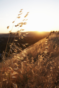 USA, California, Walnut Creek, hillside at sunset (focus on grass)